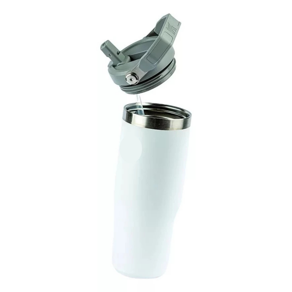 Garrafa Flip Straw Tumbler com Alça Superior e Canudo (900ml) - Branco