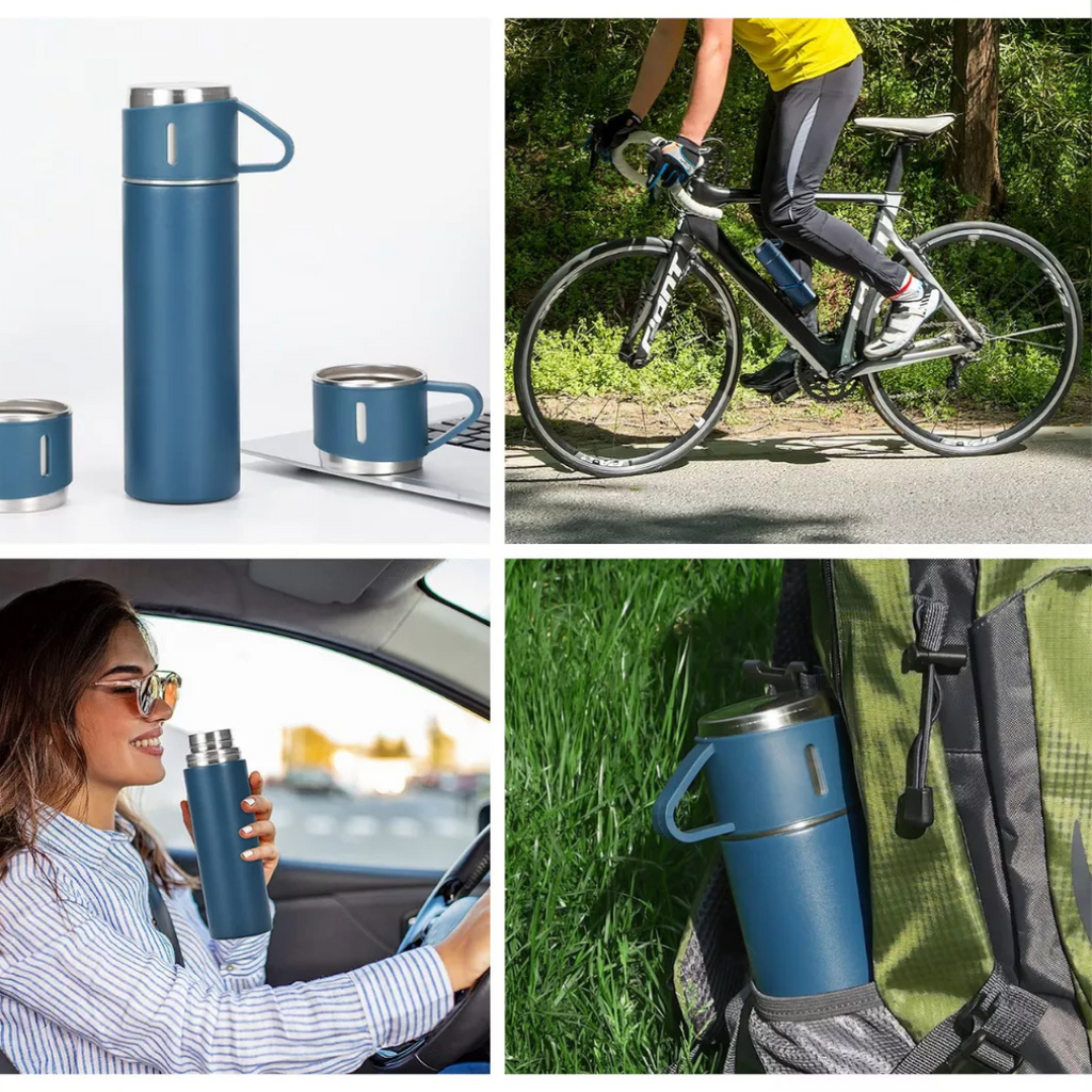 Essa garrafa de inox é o que você precisa para manter seus líquidos na temperatura ideal, tanto sejam líquidos frios ou quentes. Ela conserva a temperatura por muito tempo do jeito que você gosta, como café quentinho ou um suco gelado. Super indicado para viagens, camping e até mesmo em sua caminhada casual do dia a dia, tendo ele uma tampa em formato de copo, que é um diferencial dessa garrafa. Grande moda na Europa e Estados Unidos, esse produto chega com grande força no mercado nacional.
