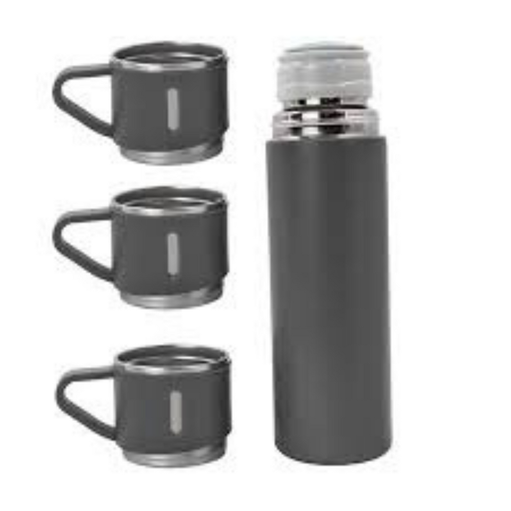 Personalizado - Jogo de Garrafa Térmica 500ML + 3 Xícaras Aço Inoxidável - Cinza