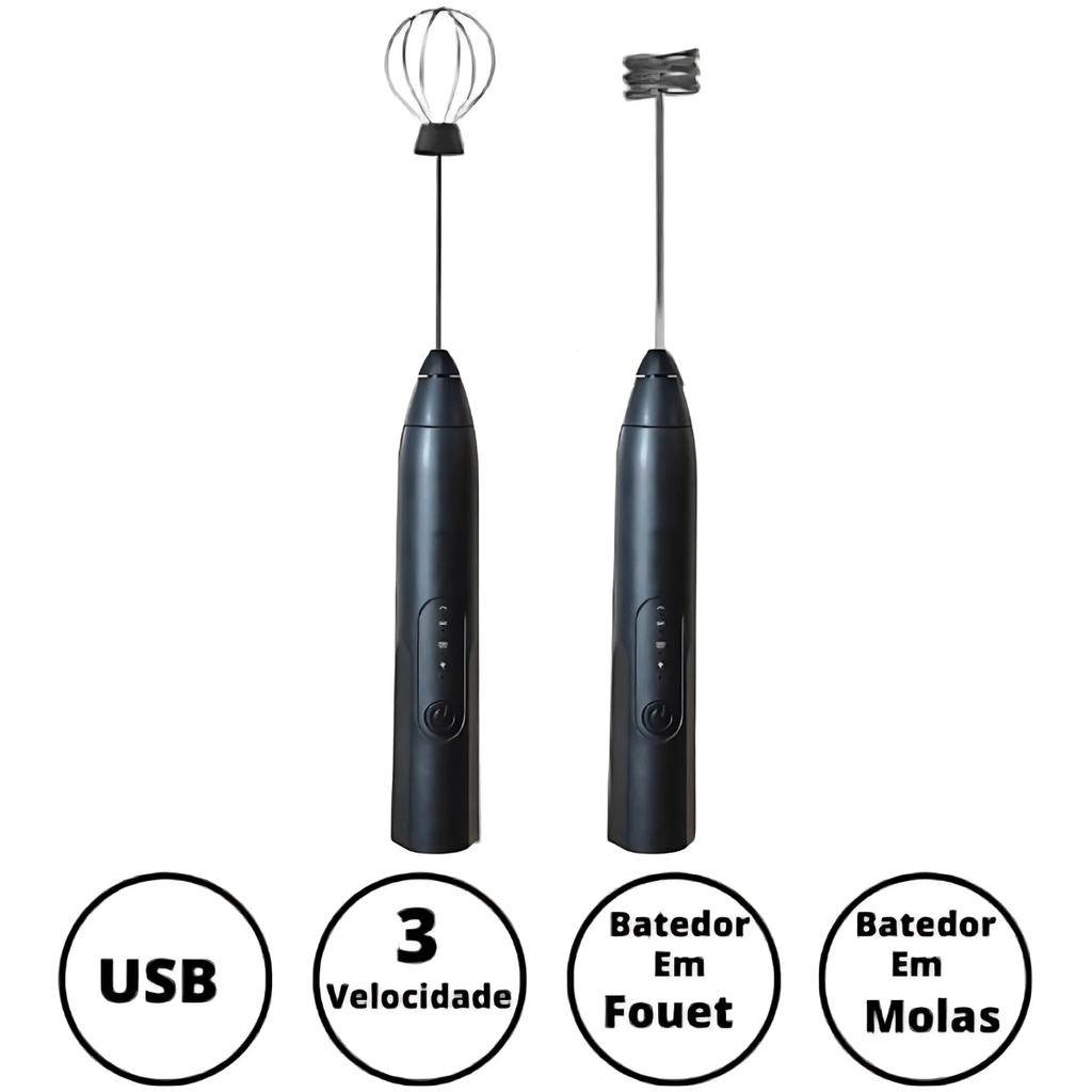 PRETA - (Premium) Mini Batedor Mixer Elétrico Portátil
